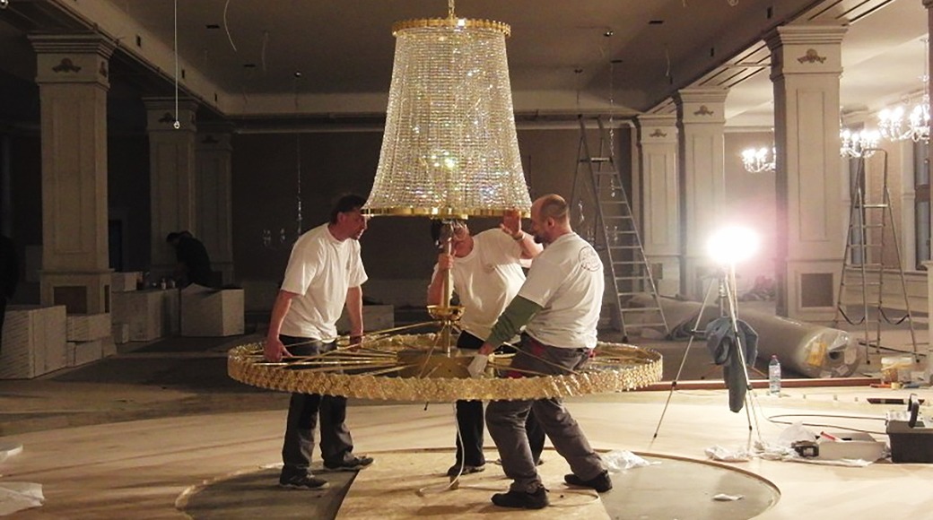 Logramos hacer también pedidos muy grandes, en los que podemos proporcionar el montaje de la lámpara de araña por nuestros especialistas.